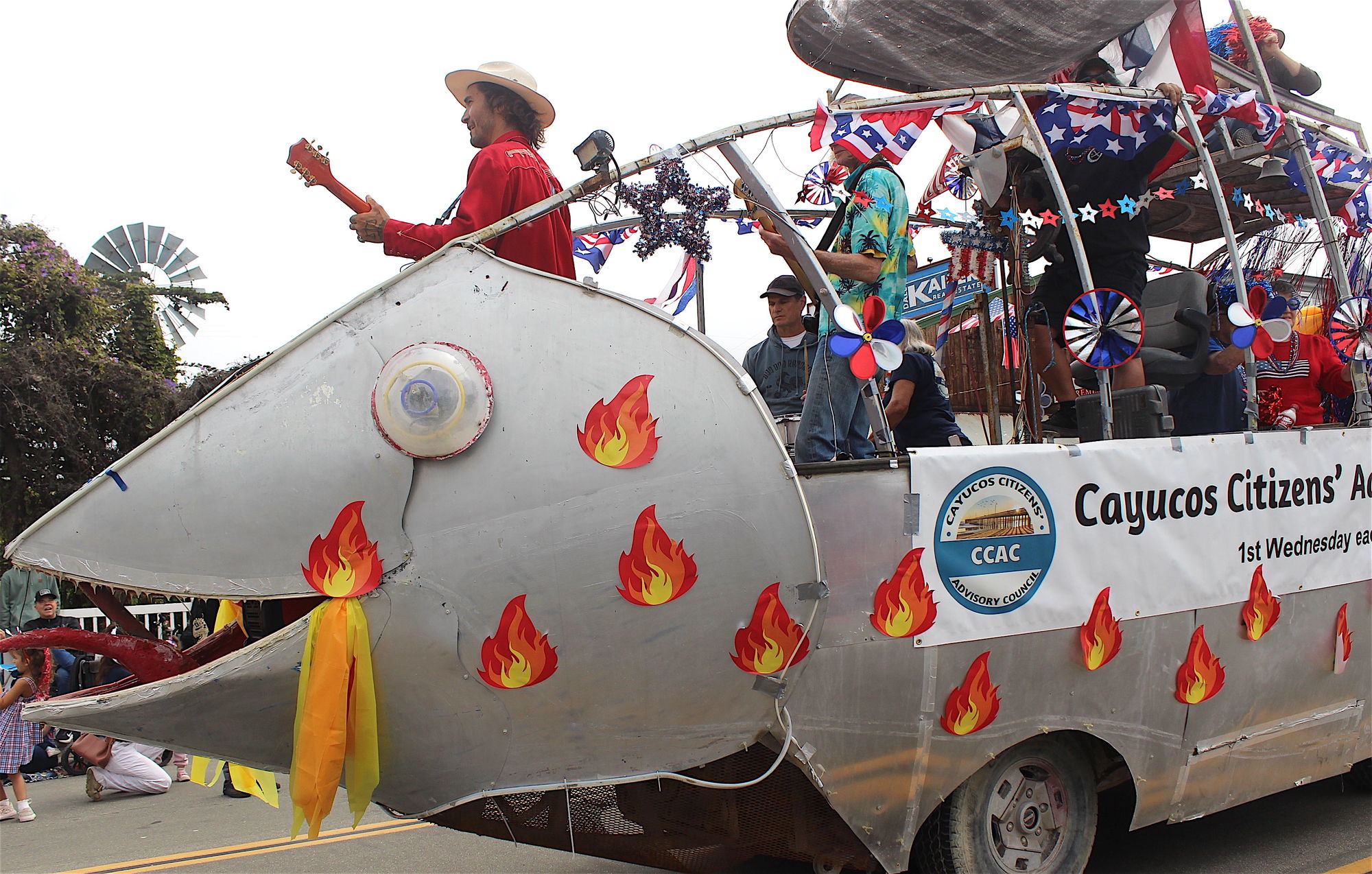 With a theme of “Beach Cowboys,” the Annual Cayucos Lions Club’s Independence Day Parade had an estimated 30,000 people of all ages lining Ocean Avenue for the annual Doo-Dah parade and celebration. An impressive 49 entries took part in the parade representing local service clubs, Cayucos School, youth programs, nonprofits, businesses, and families. Bedazzled in red, white and blue, folks danced, skated, played rock ‘n’ roll, and even played a little tennis in the street while tossing candies to the scores of children (and a few sweet-toothed adults, too) in the crowd. The parade’s large turnout is expected to pale in comparison to what they anticipate next year, when the whole nation celebrates the 250th anniversary of the signing of the Declaration of Independence.