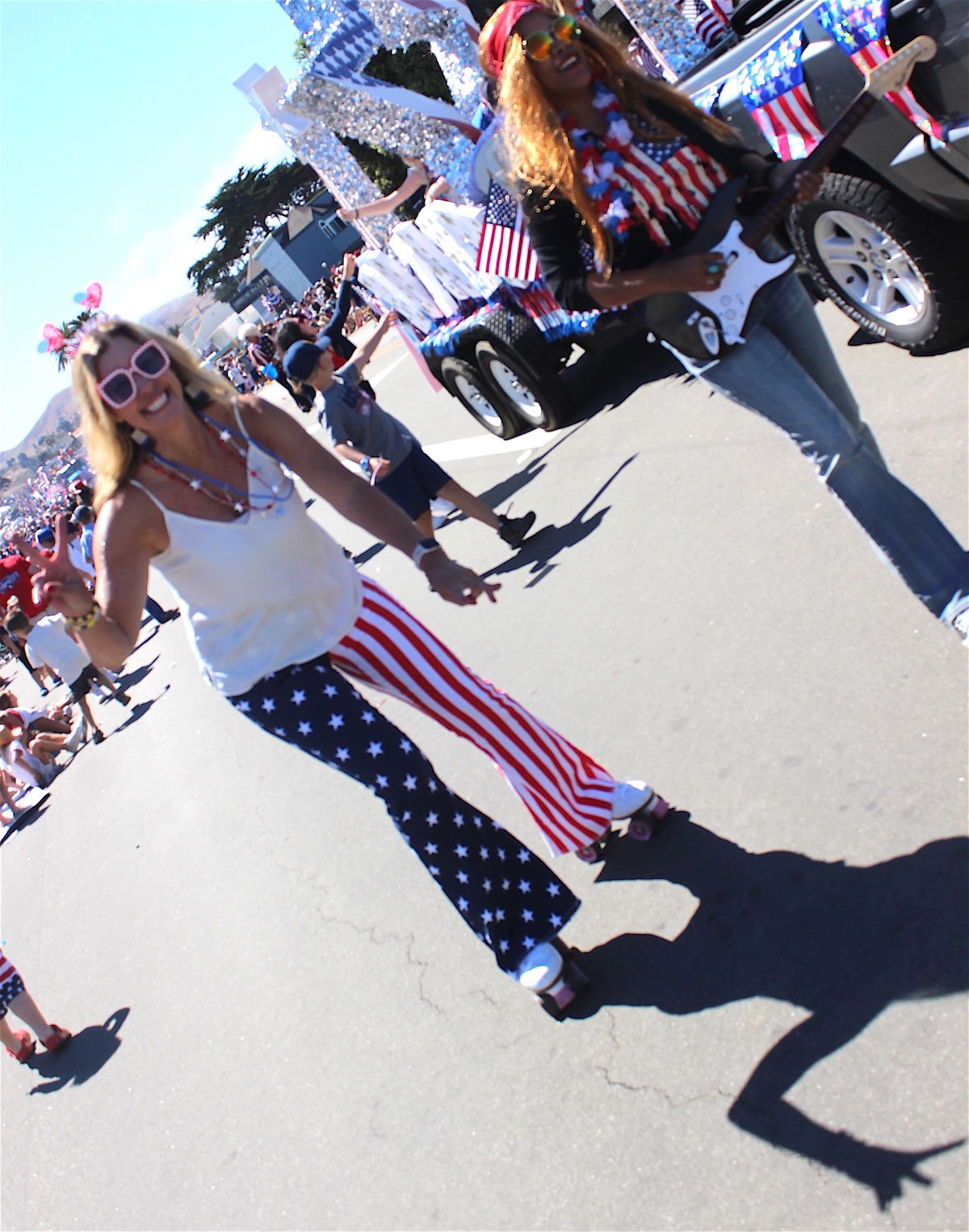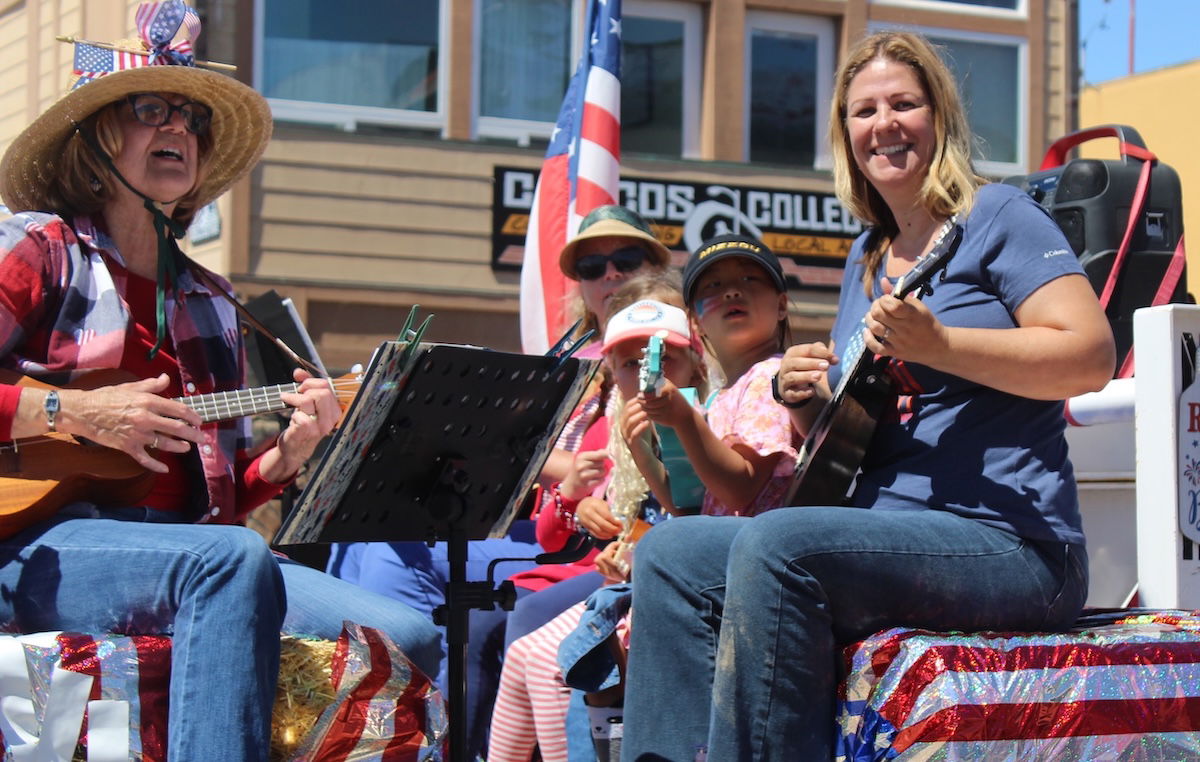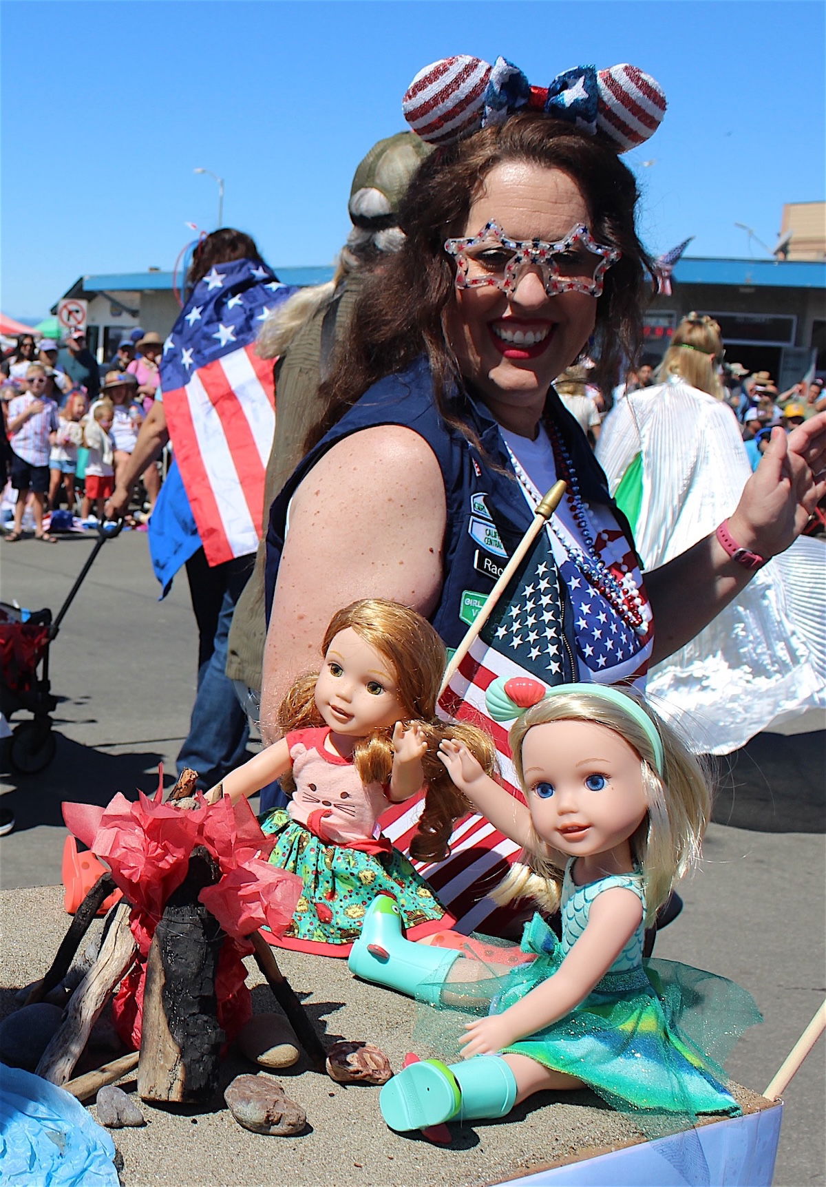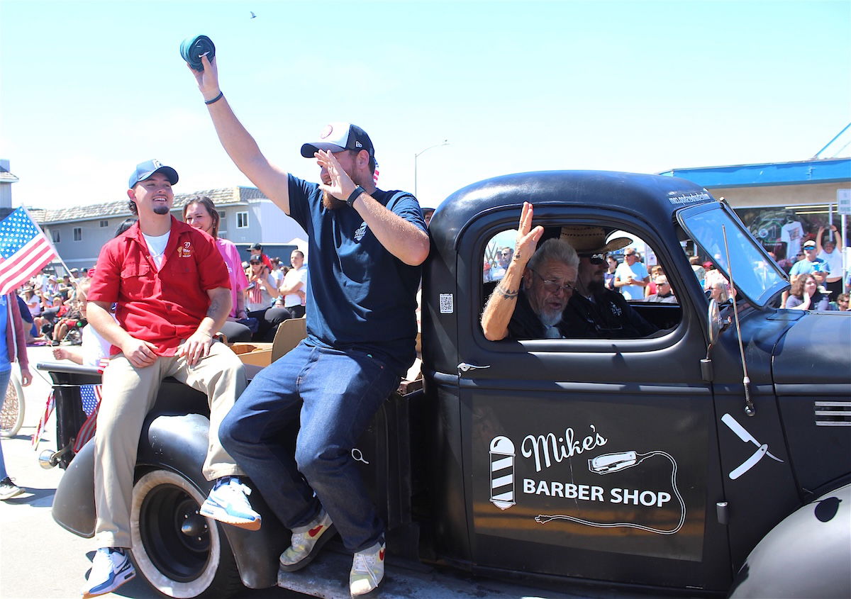 An estimated 22,000 people turned out on the 4th of July for the Annual Lions Club Independence Day Parade. And while the day dawned beautiful and sunny, the normal fog rolled in to cool things off a bit. Cool off, that is, except for the fish mobile entry by the Cayucos Citizens Advisory Council, which had a rock 'n' roll band with Billy Foppiano playing surf music until the custom-built boat that looks like an albacore tuna caught fire and was disabled. Volunteers from the crowd jumped to the rescue and pushed the car along the parade route until the fire chief hooked up a tow strap and towed the car like a [giant] fish out of water. Among the entries was Miss California Teen USA Paige Gonor, who sang the national anthem for the crowd when she reached the judge's stand.