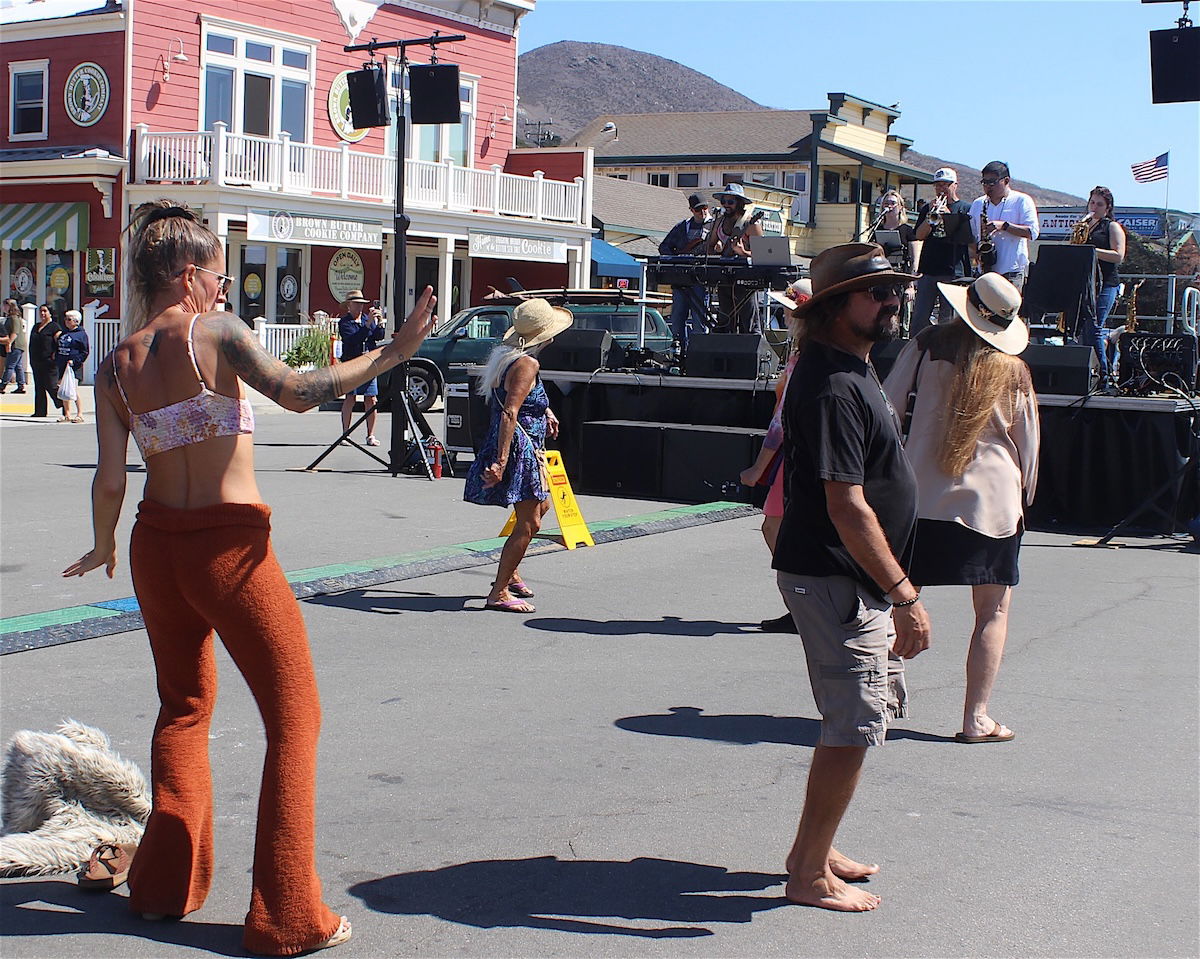 Hundreds of people turned out Saturday, Sept. 20, for a street fair, part of the Cayucos Chamber of Commerce's 3-day celebration of the town's 150th Birthday. Folks were treated to a glorious sunny day, live music, yummy foods, a beer and wine garden, kids' play area, and lots of vendors selling vintage clothing, handmade jewelry, home goods, spices, incense, barbecue sauces, and more. The celebration actually began the night before with a sold-out community dance at the Boradori Garage, featuring country acts, Longstraw and the Monte Mills and the Lucky Horseshoe Band. Folks of all ages and kinds — from surfers to ranchers — turned out for the event. On Sunday, the Chamber hosted a champagne toast and reception at the newly reopened Cayucos Landing event center [Cayucos Vet's Hall]. The celebration marked the 150th anniversary of the founding of Cayucos by Capt. James Cass, whose import and export shipping business was the hub of the community that grew up around it. Capt. Cass built the first Cayucos Landing Warehouse for the Captain's enterprise, as well as the iconic 950-foot pier, which was the landing spot for coastal steamships starting in the 1870s. The steamers brought all manner of goods to Cayucos and were loaded with numerous local products, including dairy products from the many local dairies that populated the area at the time.