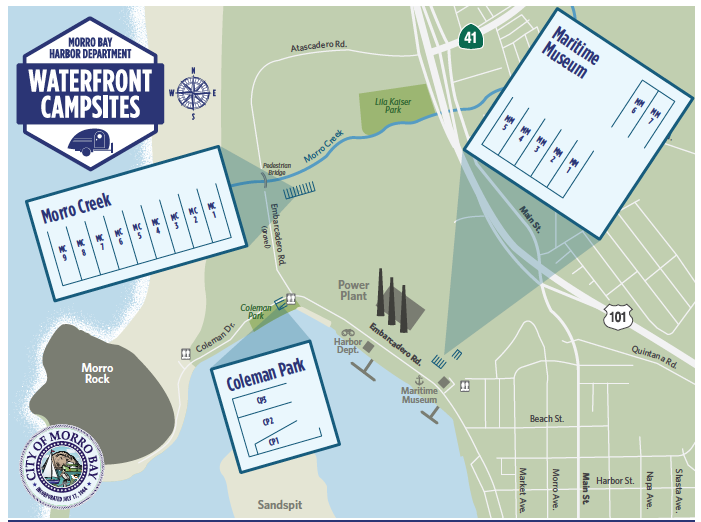 The RV camping idea was hatched in April 2019, according to Endersby’s staff report. The initial recommendation was for six sites: Target Rock; Coleman Park parking lot; Morro Creek near the Harbor Department’s storage building; at The “Pit” open areas by Morro Dunes trailer/RV park; in the Triangle parking lot near the Maritime Museum; and in the public boat launch ramp parking lot.