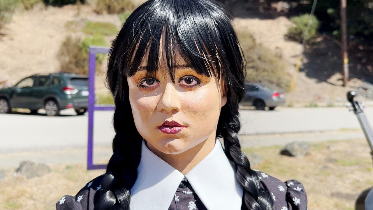 A Wednesday Addams scarecrow is displayed at a previous Cambria Scarecrow Festival.