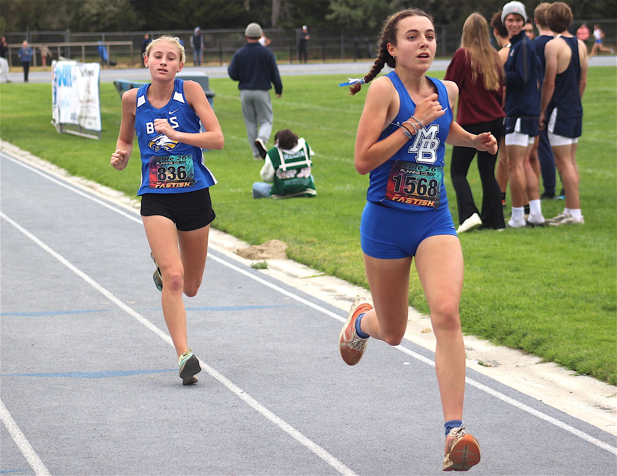 Morro Bay's Shelby Taylor (right) and Wendy Wilson were near the head of the pack just after the start of the Small Schools Girls Varsity race.