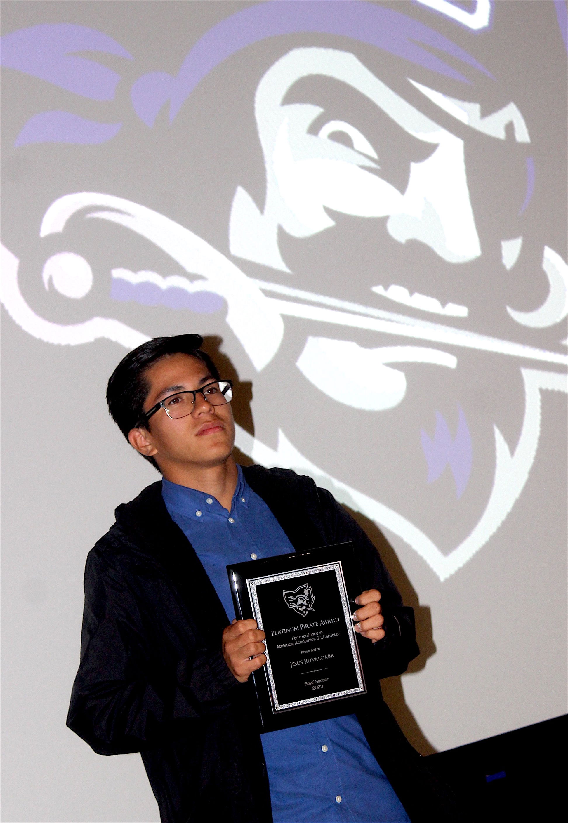 Jesus Ruvalcaba was given the Platinum Pirate Award for his contributions to the boys' soccer team.