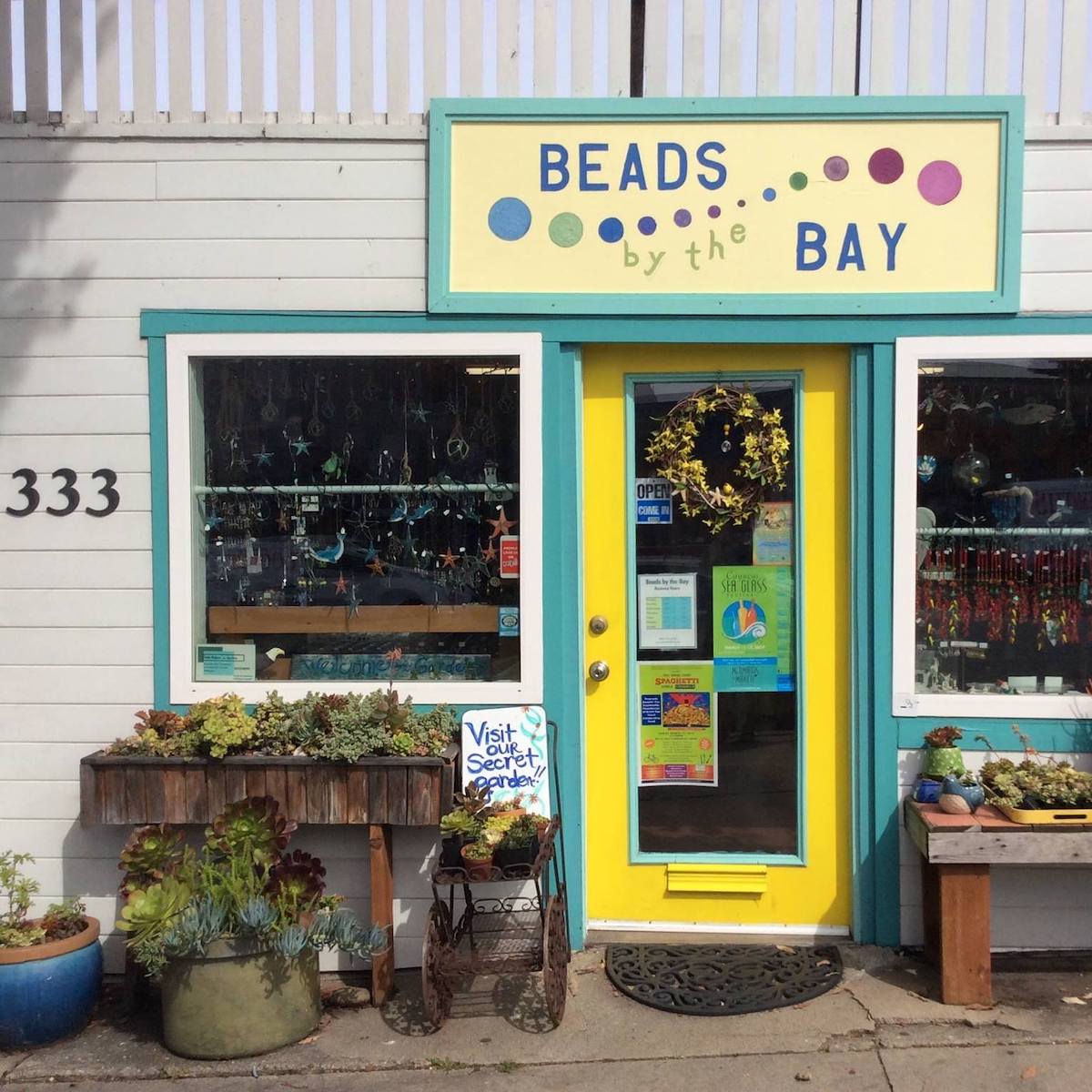 Fortunately, Beads By the Bay “was a turn-key business as far as the beads went,” Stewart says. Former business partner Penny Harrington “introduced me to Helen Edwards, and I eventually offered the garden space to Helen to develop a business with succulents and garden related items,” she adds. Penny eventually left to open her own shop with more space. Yet, Stewart says, “Helen has really grown her part of the business to include pottery, air plants, garden miniatures, and crystals.” In addition to the shop, they offer classes that vary from making jewelry to garden features.
