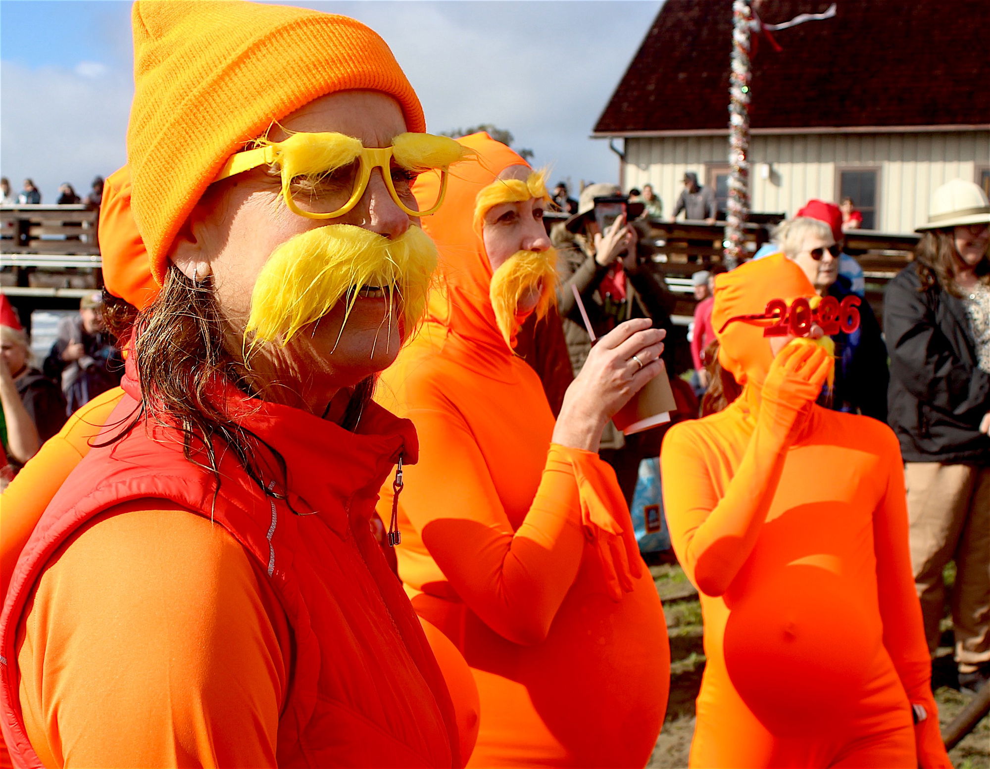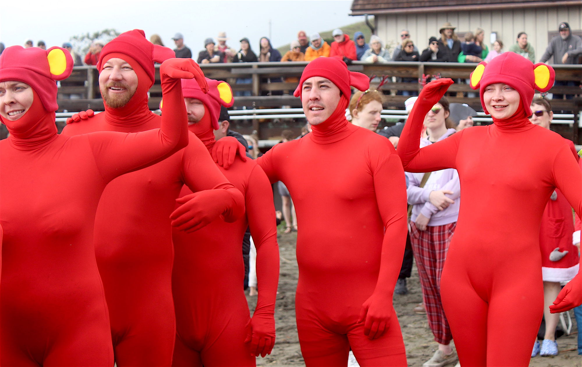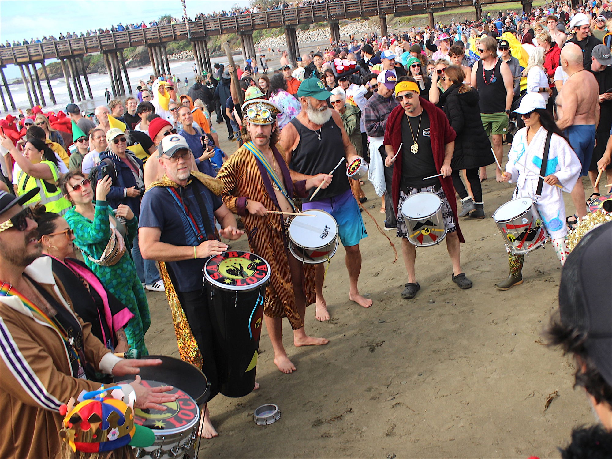 Rainy skies didn't dampen the spirit of thousands of folks who turned out for the 46th Annual Carlin Soulé Polar Bear Dip in Cayucos on New Year's Day. As is custom, the day started early as dippers trickled onto Cayucos Beach, many wearing crazy costumes and toasting the start of 2026 before the noon dip into the 57-degree Pacific Ocean.