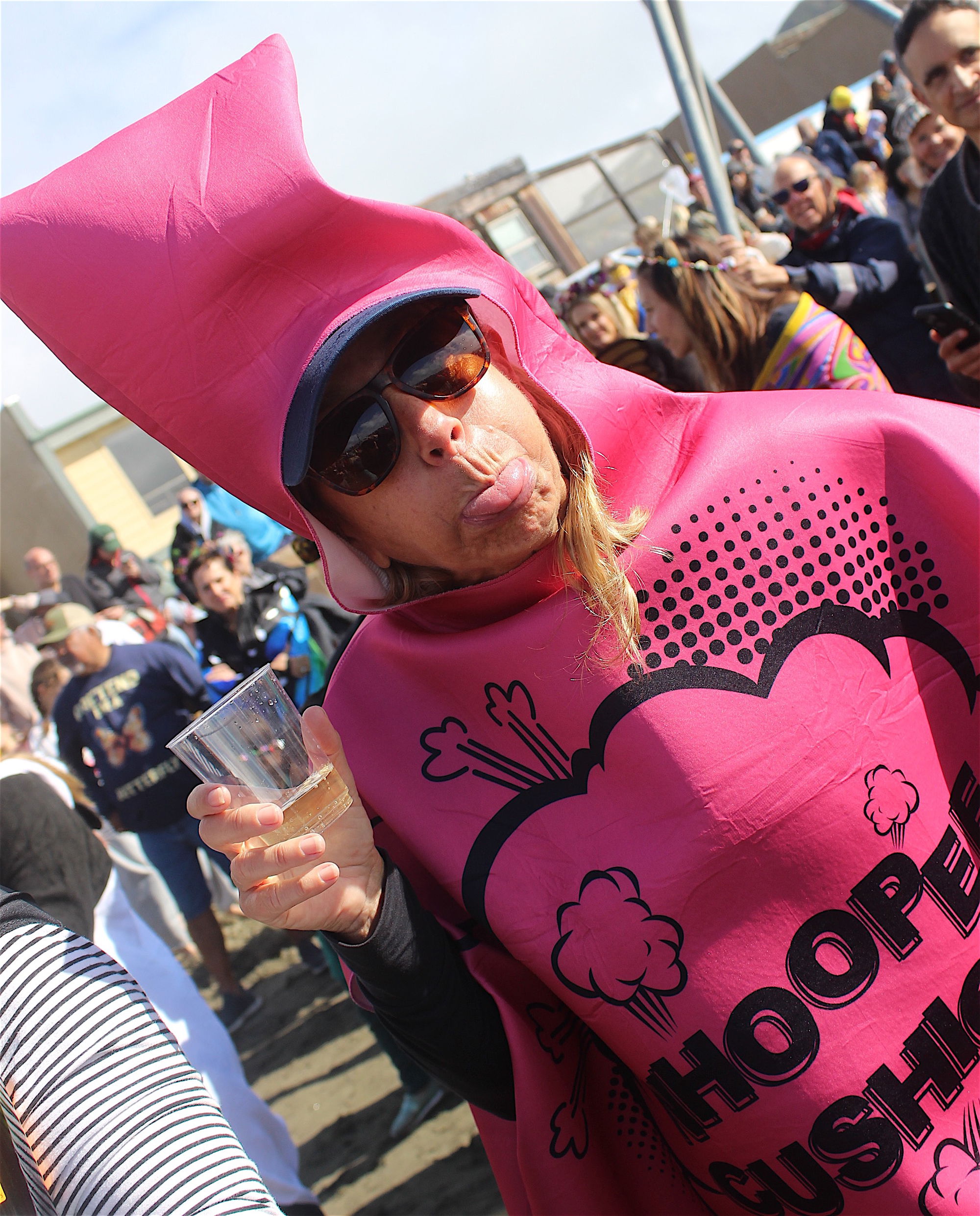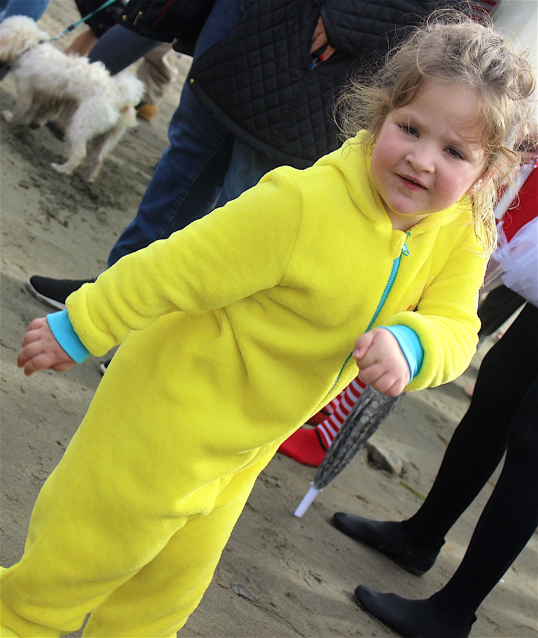 Prizes were awarded during the pre-dip costume contest. The oldest dipper was an 85-year-old fellow and the youngest was a 17-month-old baby. A woman from Austria earned the award for traveling the farthest to be there and a group of Loraxes from Dr. Seuss took the prize for best costumed group. The best individual costume was a young man wearing a frizzy pink wig and Speedo, and nothing else. The most creative was a family of Chicago Bears fanatics and a family that has been attending in coordinated costumes for the past 16 years got a special award.