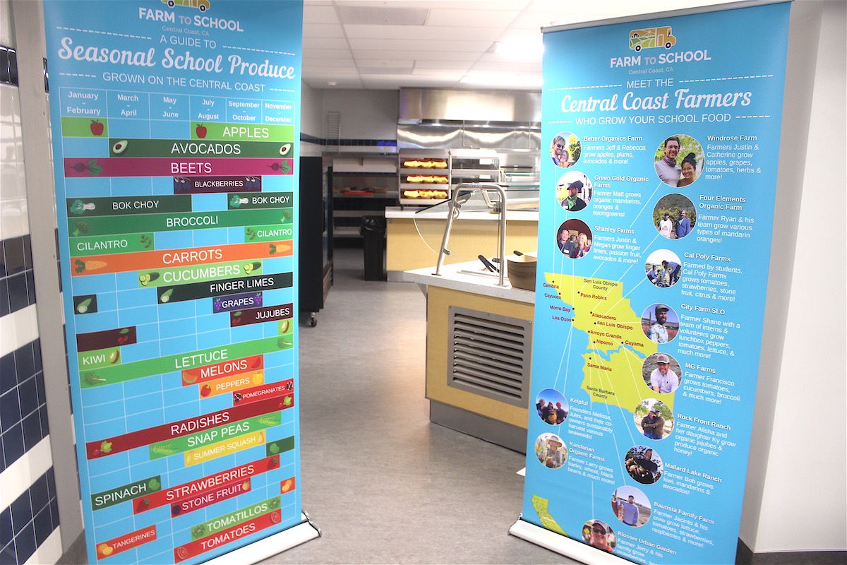 There's a salad bar that is filled with locally sourced fruits and vegetables, and the kids help themselves, choosing the items they want to eat.